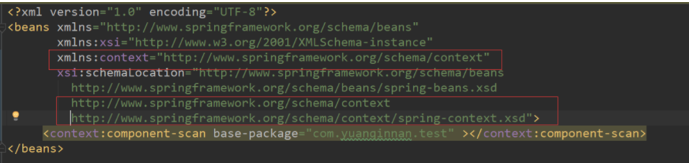 <context:component-scan base-package="com.yuanqinnan.test" ></context:component-scan>