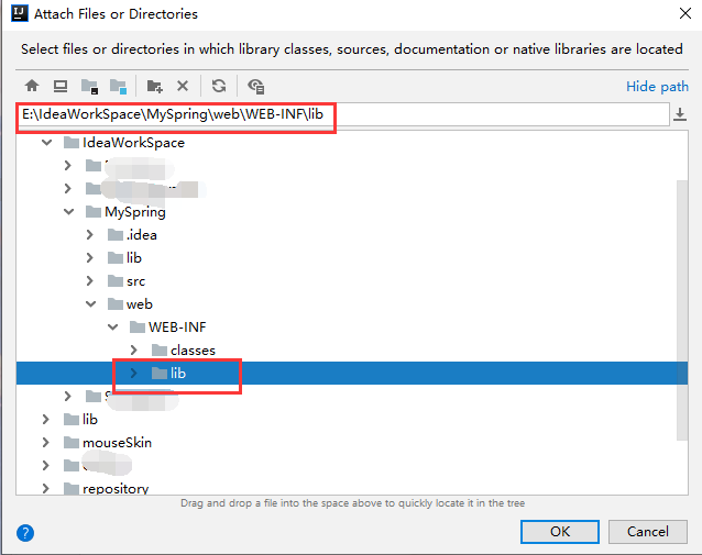 然后将项目中的lib文件夹选中,会返回刚刚的界面,仔细看下面会出现一个lib的引用