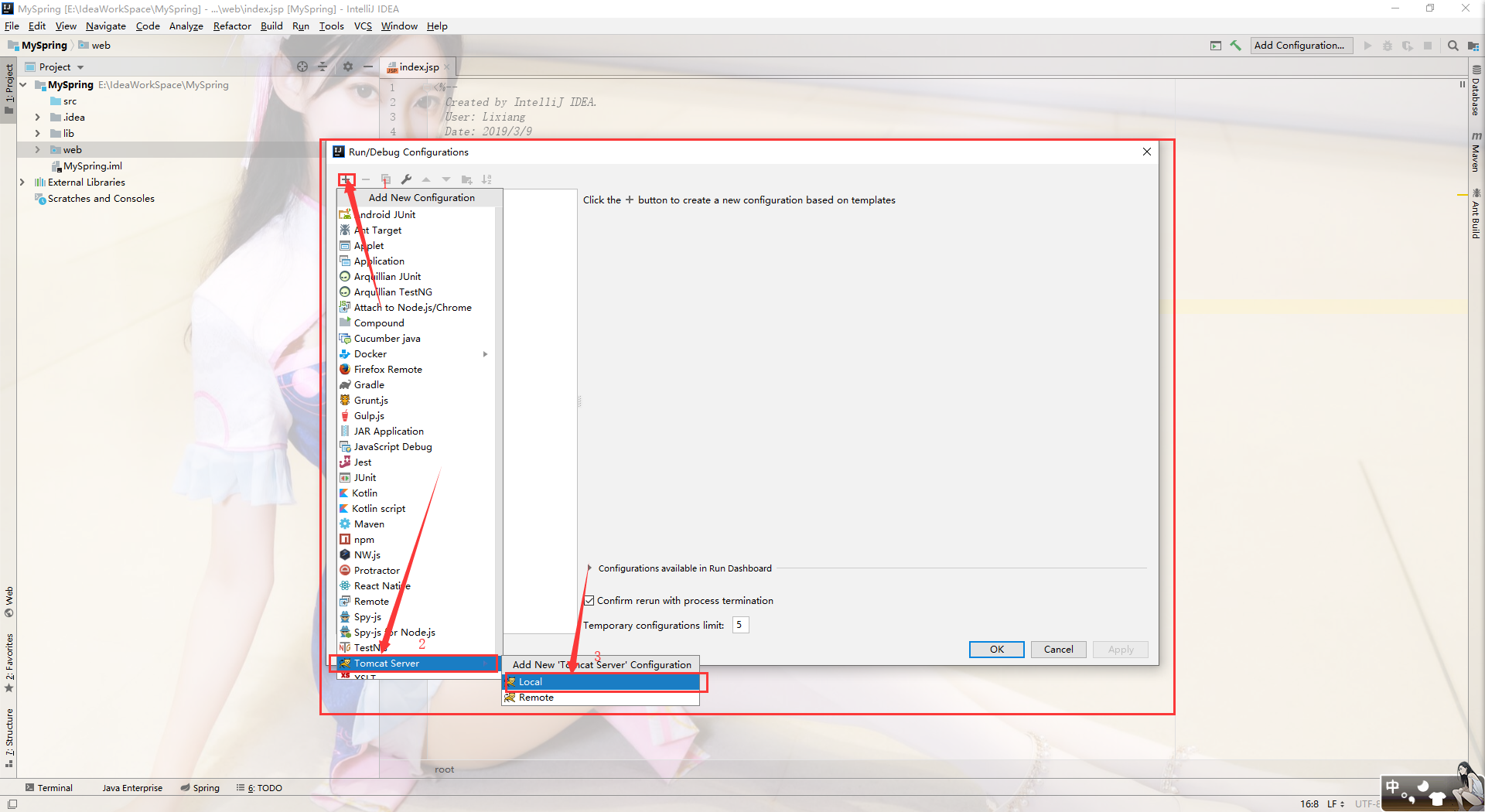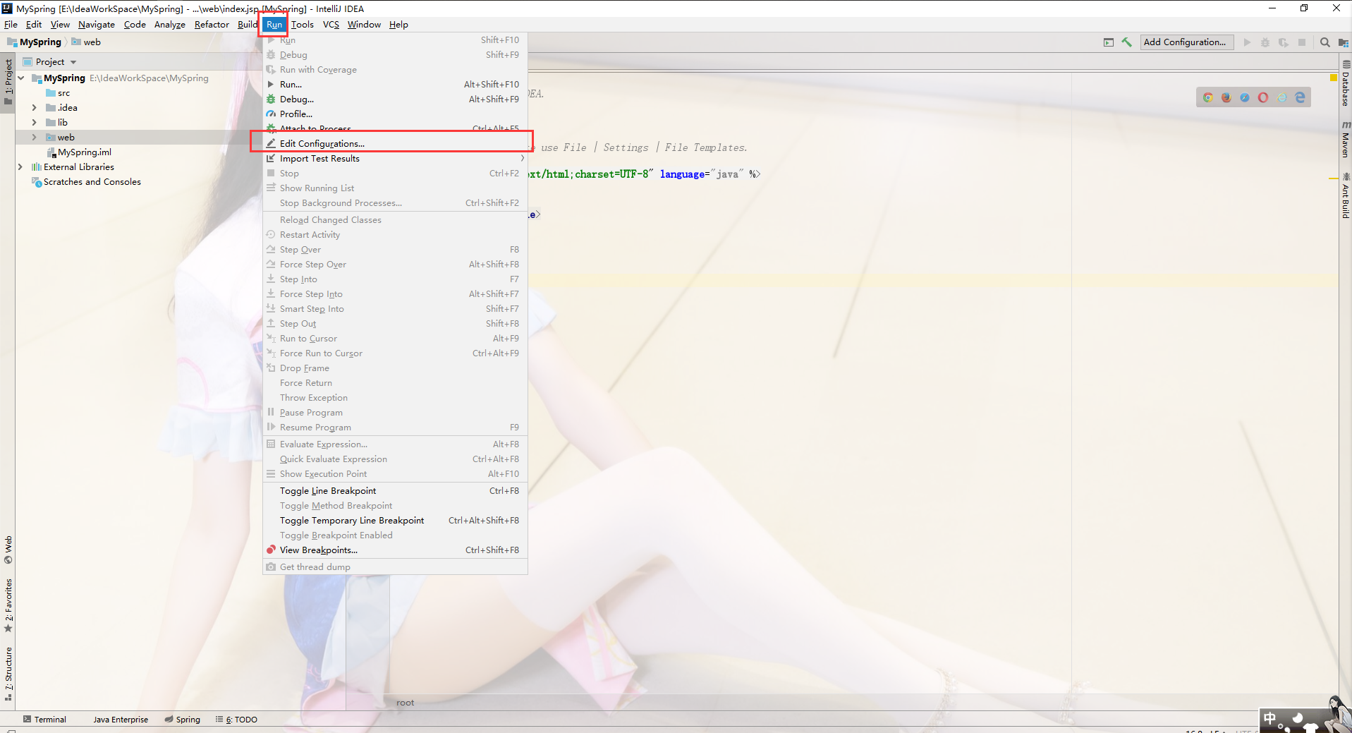 点击ok,接下来配置tomcat,点击run-->Edit Configurations...