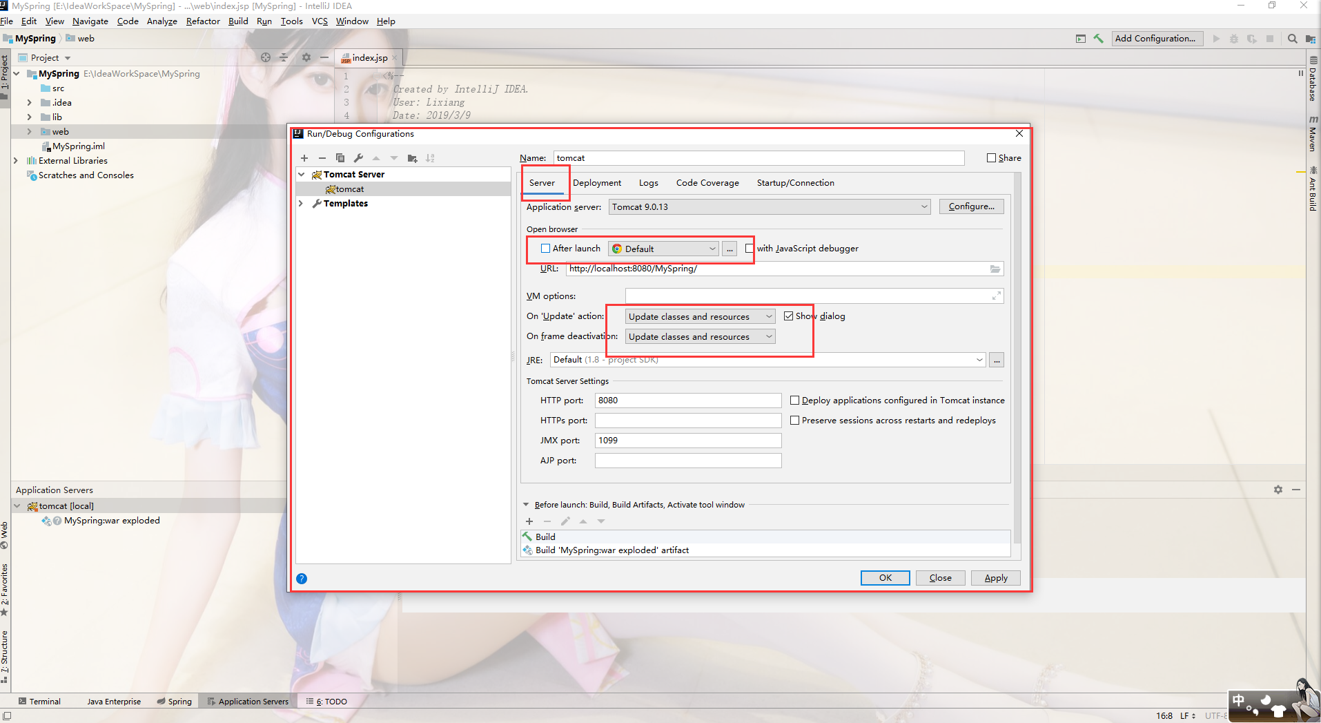 将配置改为如下图,点击ok,然后就可以启动我们的第一个Spring项目啦