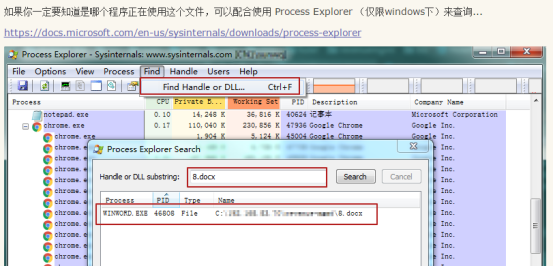 原因是你工作目录有某些文件正在被程序使用,这个程序多半是Idea,VS或者eclipse,当然也可能是其他程序