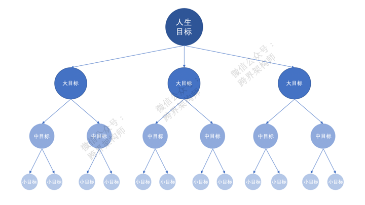 理想的小目标结构最好是这样,逐级支撑更大的目标,直到「人生目标」。