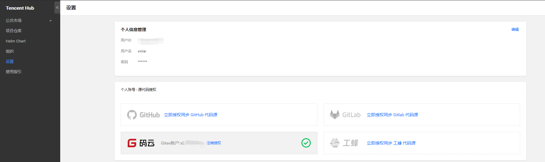 注意:Tencent Hub项目仓库实质上是一个镜像仓库,可以存放我们构建的docker镜像。