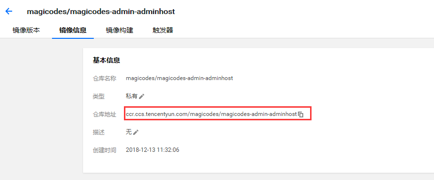 创建之后,我们就可以获得完整的镜像仓库地址,如下图所示: