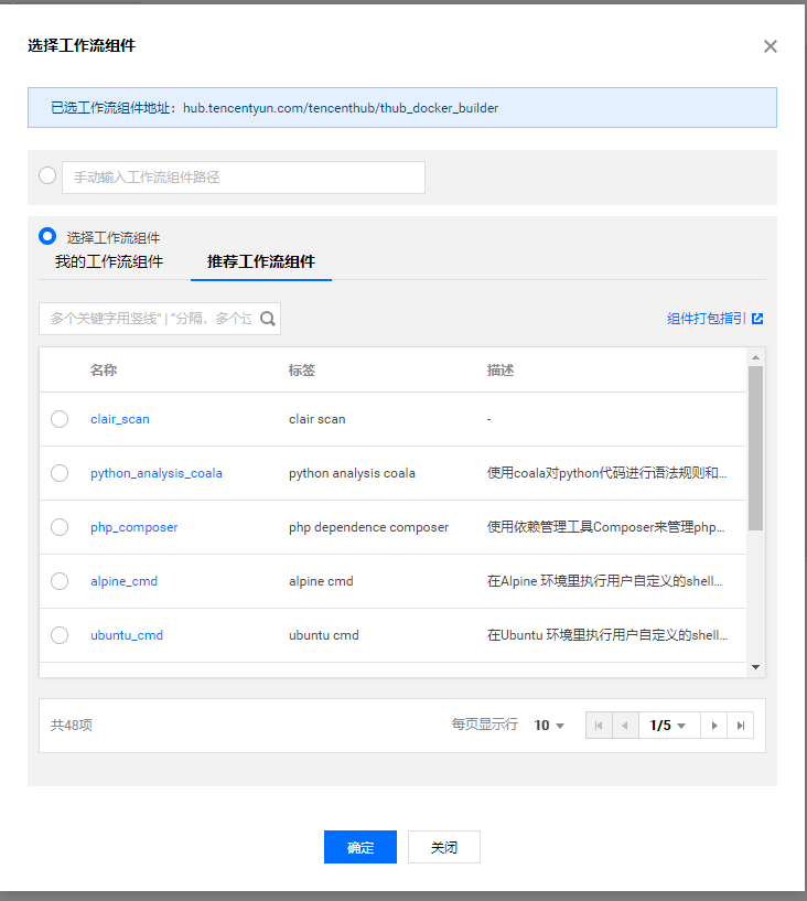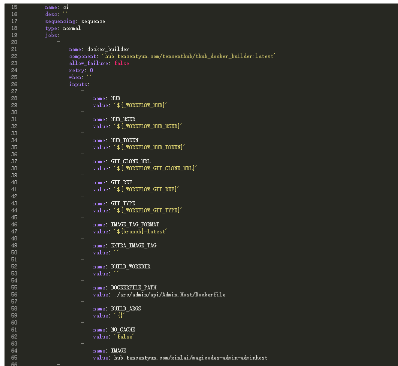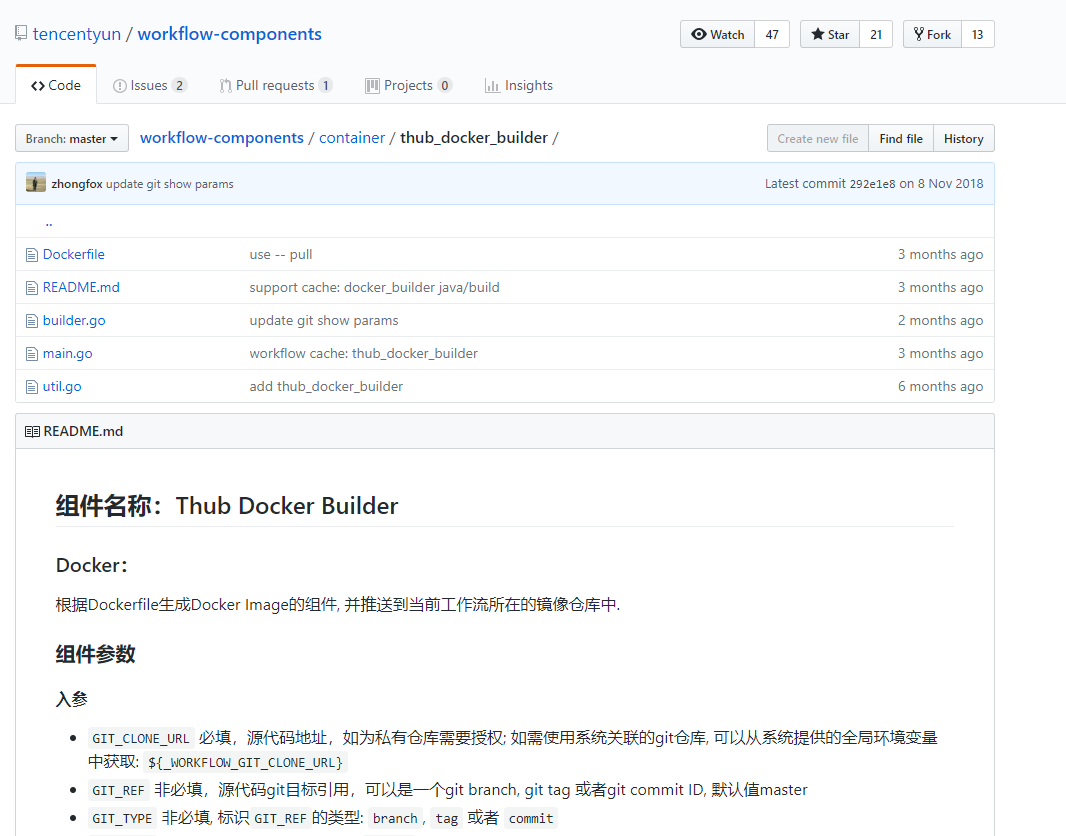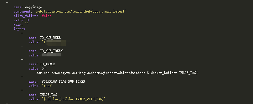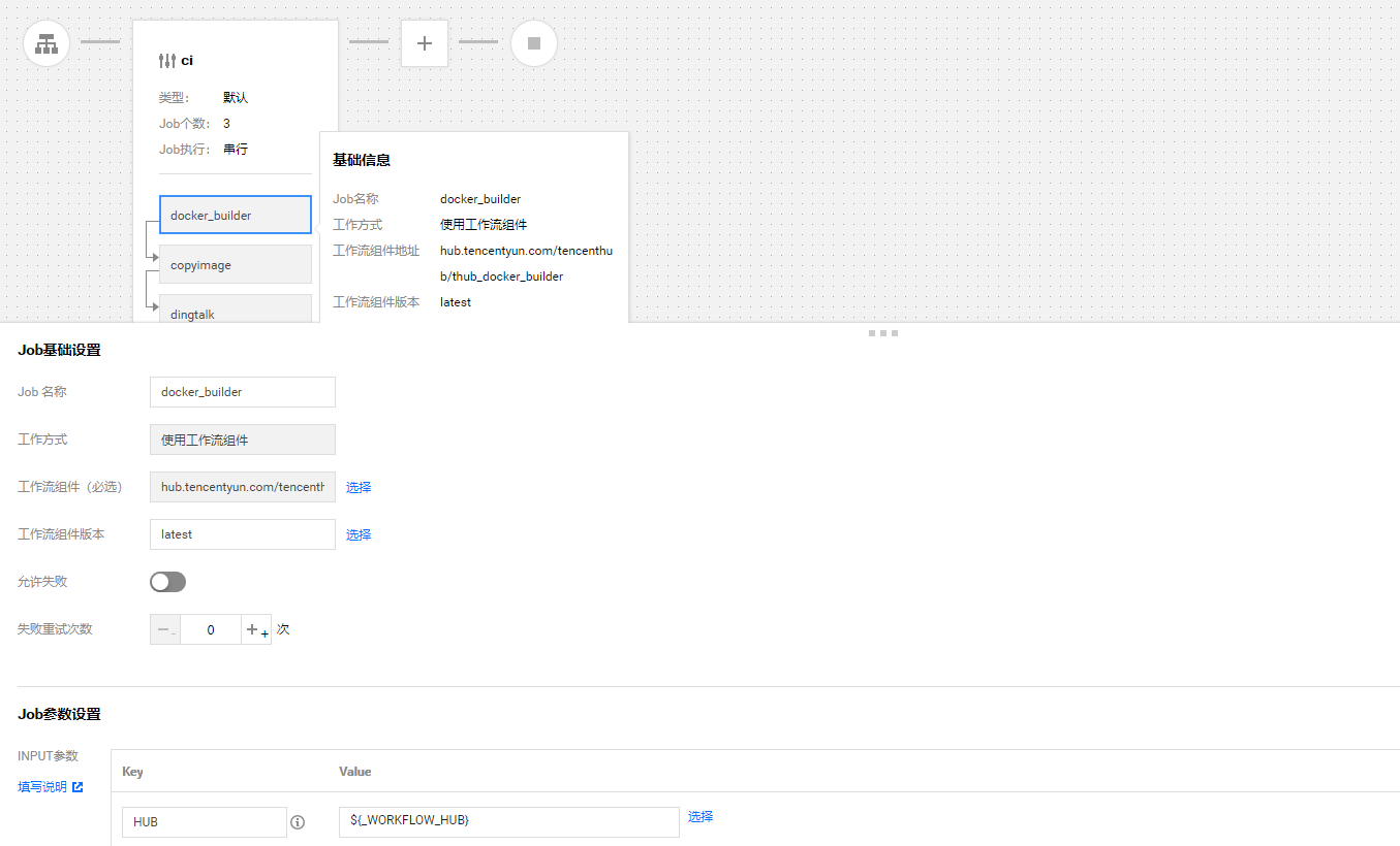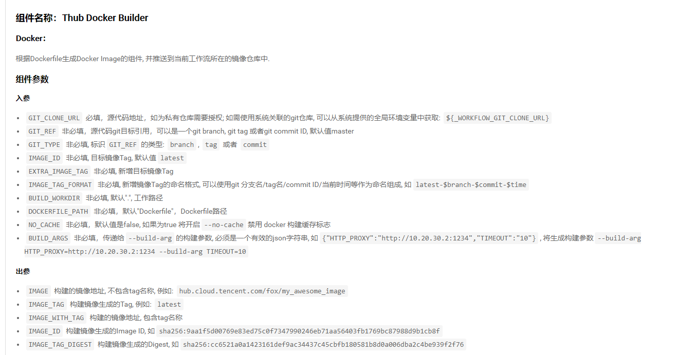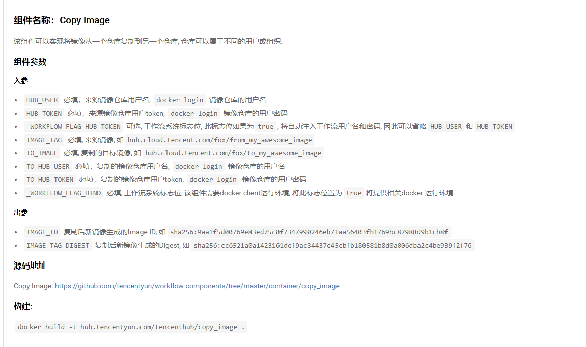 这里,我们需要借助工作流组件 hub.tencentyun.com/tencenthub/thub_docker_builder 来完成进行过构建。