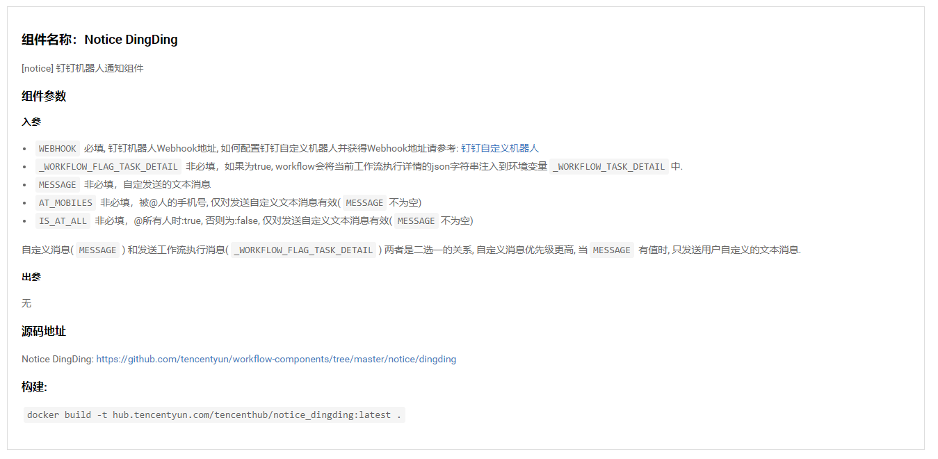 Tencent Hub的工作流组件均已开源,我们也可以直接查看源代码(有时候如果开发文档没有及时更新,照着文档配置可能会入坑),如下图所示: