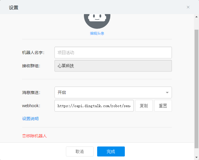 完成后推送钉钉消息