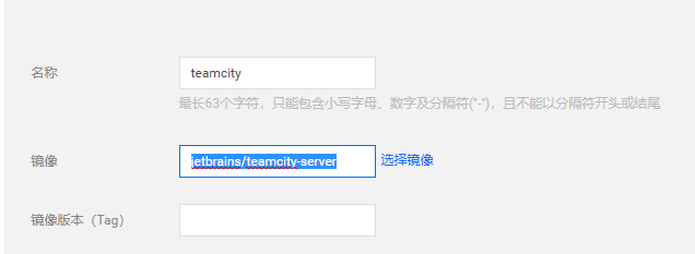 镜像名称为:jetbrains/teamcity-agent,如下图所示(注意是直接输入):