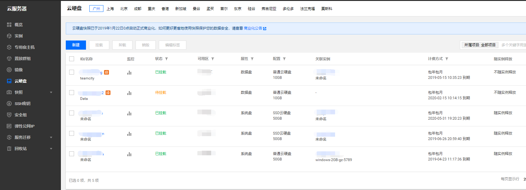 这里我们需要在云硬盘控制台添加好相应的云硬盘: