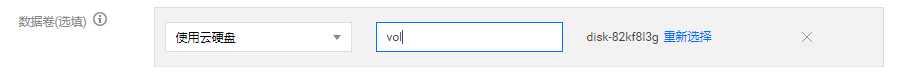 数据卷我们这里选择云硬盘,其中“vol”为硬盘命名: