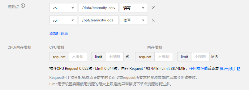 在TKE创建服务的部分细节在之前的教程中我们讲述过,这里主要讲解一些主要的点。由于TeamCity这边需要使用到数据卷做持久化,那么在TKE中,我们如果实现容器服务的持久化呢?