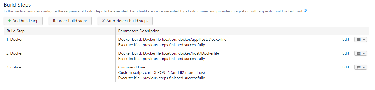 接下来,我们就可以配置触发器、失败条件判断以及参数等其他配置。整个构建步骤配置起来非常简单,大家也可以结合我之前的CI教程来完善配置,比如添加对镜像推送的步骤等。