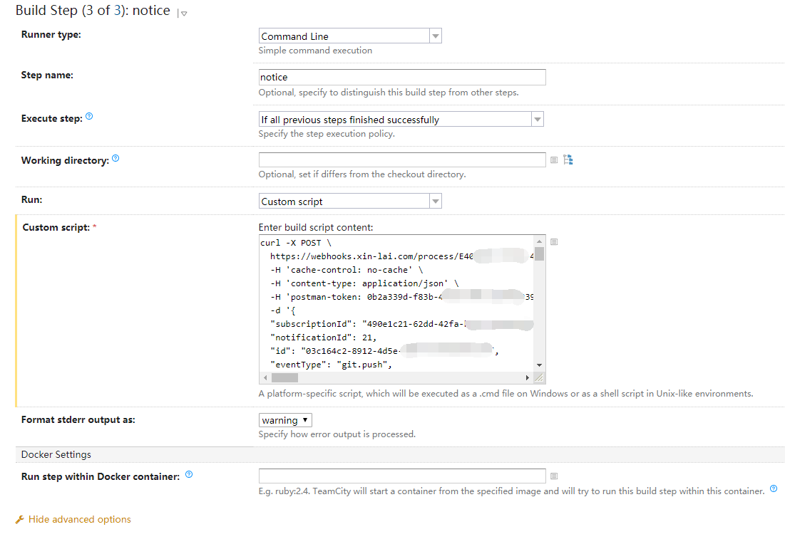 值得注意的是,如果我们使用TeamCity的代理来构建Docker容器,那么我们势必需要使用到主机的Docker守护进程,这时,我们可以使用特权级容器来解决这个问题,如下面命令所示: