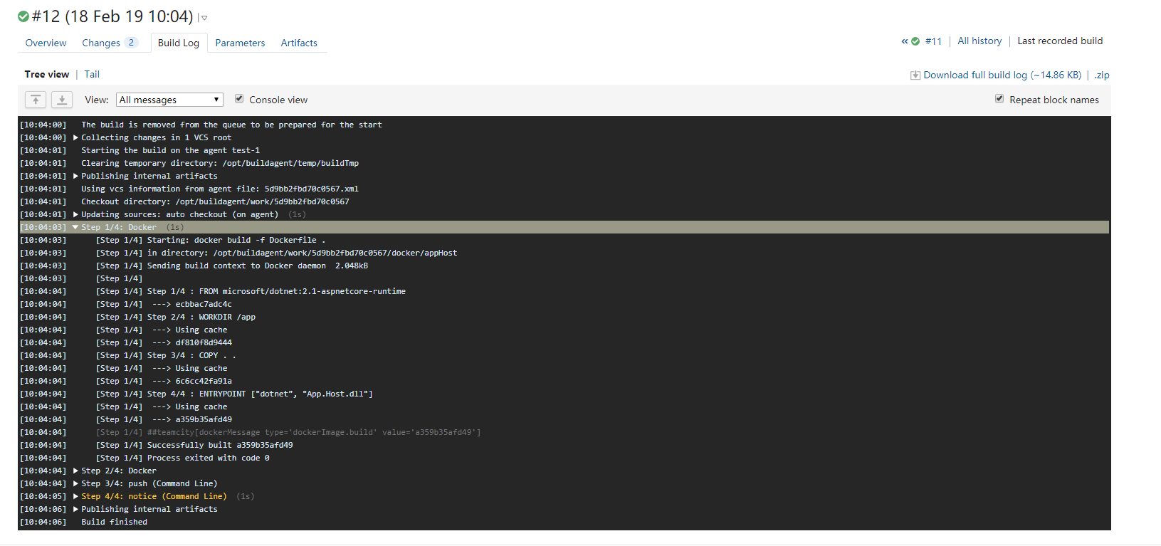 完成之后,我们就可以尝试着运行构建,并且查看构建历史: