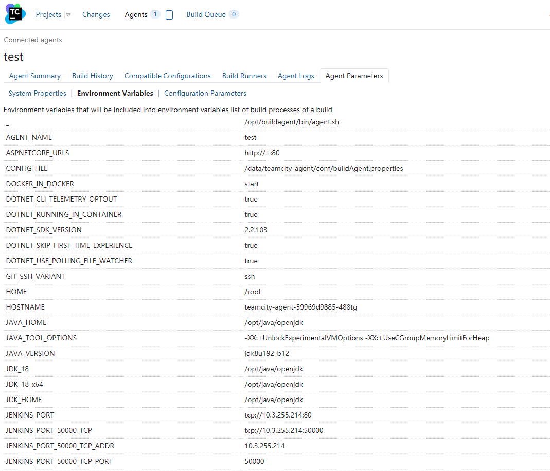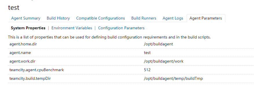在这个过程中,可能大家需要用到一些构建参数、环境变量等等,我们可以打开对应agent的Agent Parameters面板来查看详情:
