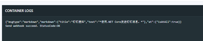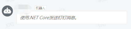 docker run --rm -e"WEBHOOK=https://oapi.dingtalk.com/robot/send?access_token={yourAccess Token}" ` -e "MESSAGE=*使用.NET Core发送钉钉消息。*" ` -e "IS_AT_ALL=true" ` -e "MSG_TYPE=markdown" ` -d dingtalk.net效果如图: