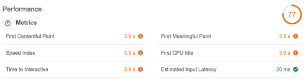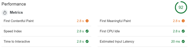 该性能测试是基于ng new创建的新应用程序运行,并使用ng build --prod构建的。测试本身使用了Chrome的审核标签完成,通过 “Applied Fast 3G,4X CPU Slowdown” 的设置来模拟在移动设备上运行。