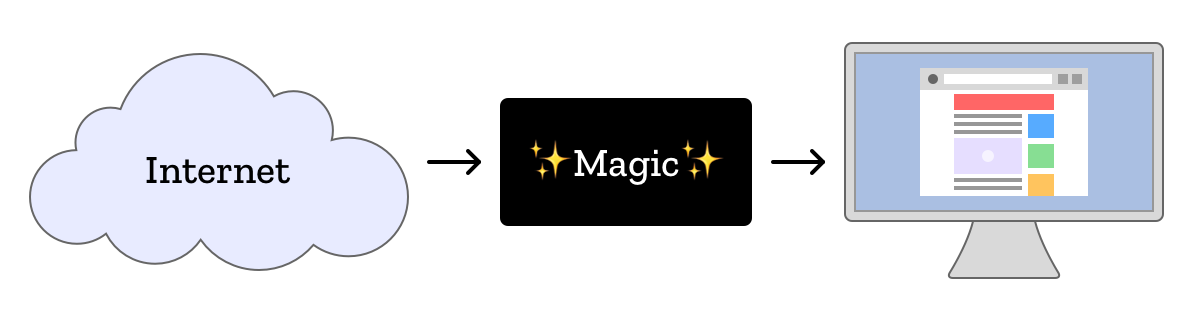 一切从结构开始。当要求浏览器请求一个网址的时候,需要提供一个地址给它。这个地址所在的是另一台计算机,一旦连接,会给浏览器传回数据。这一过程具体如何进行的细节,参考这篇独立的文献,而最终浏览器只是会获取这些数据。这些数据以HTML格式发回,它描述了网页的结构。 浏览器如何理解HTML呢?