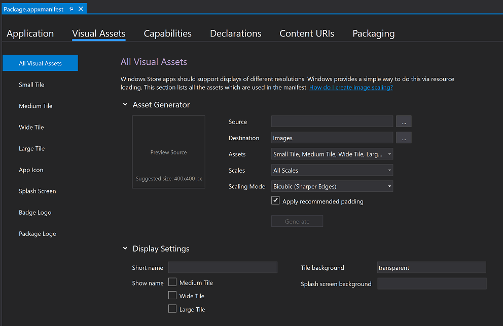 不能方便的对打包的程序做修改,需要额外的工具如MakeAppx啥的。而使用Visual Studio的话,就直接在Packaging工程里修改appxmanifest.xml文件就可以了,比如换个磁贴图标啥的,简直就是一键生成。