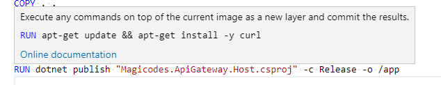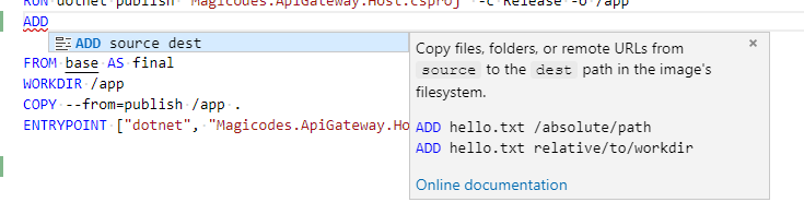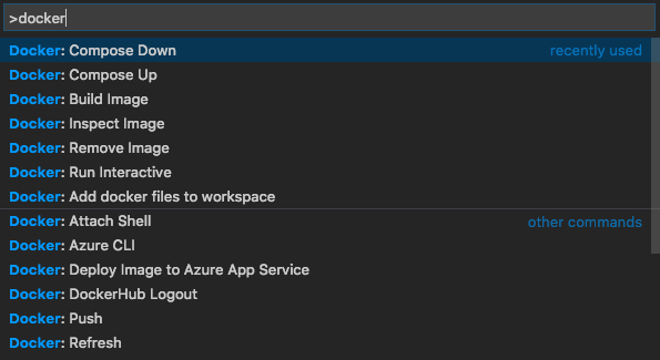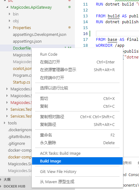 集成最常见的Docker命令(例如docker build,docker push等,需按F1唤起);