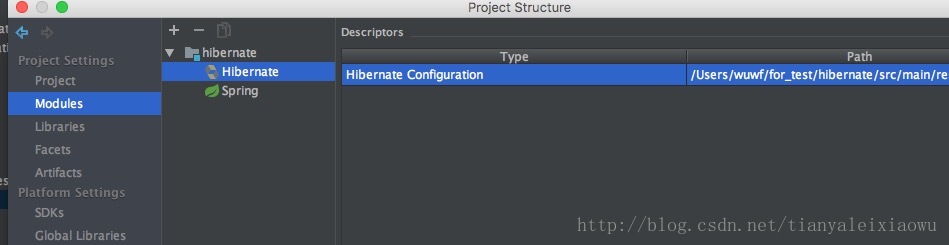 我们点击箭头处,或者在project structure里如下图,添加hibernate configuration