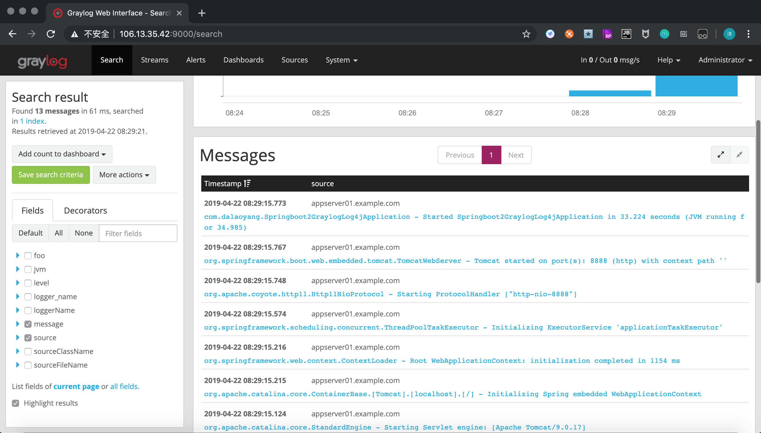 启动项目,当前项目端口是8081,查看Graylog控制台如图: