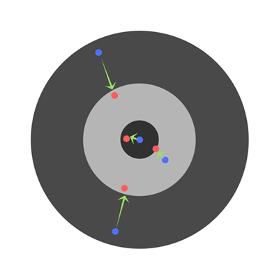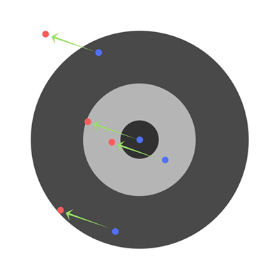 假设有几个孩子被要求向飞镖靶掷飞镖,瞄准中心。最初的结果是:
