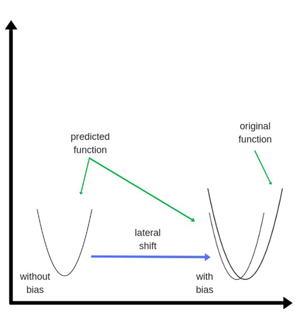 偏差(Bias)是添加到隐藏层的权重。它们也被随机初始化并以隐藏层相似的方式更新。虽然隐藏层的作用是映射数据中底层函数(underlying function)的模型,但偏差的作用是横向移动学习函数(the learned function),使其与原始函数(the original function)重叠。