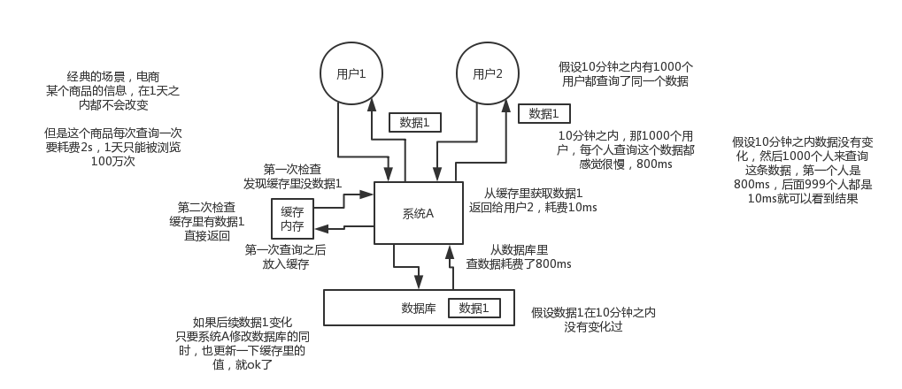 假设这么个场景,你有个操作,一个请求过来,吭哧吭哧你各种乱七八糟操作mysql,半天查出来一个结果,耗时600ms。但是这个结果可能接下来几个小时都不会变了,或者变了也可以不用立即反馈给用户。那么此时咋办?