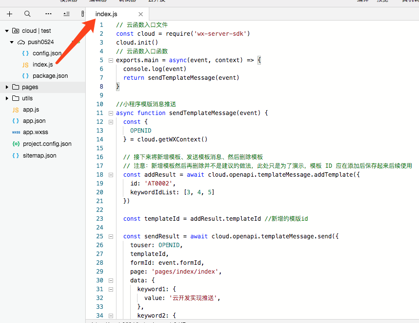 下面就来教大家如何借助云开发实现小程序模版消息的推送功能。
