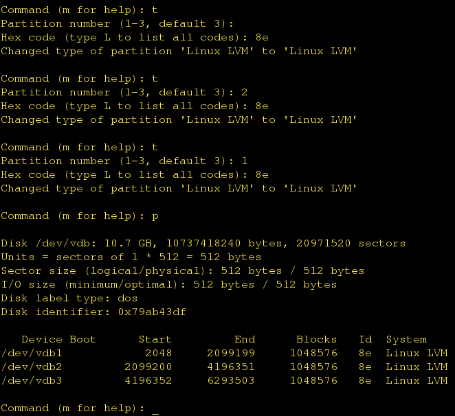 2-1.划分物理分区并把分区id修改为8e,划分分区祥见设备分区