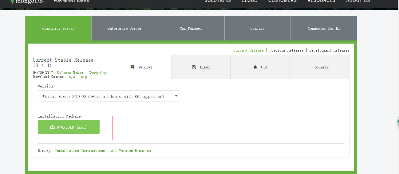 1. 去官网上下载适合自己电脑的MongoDB版本下载MongoDB。网址:https://www.mongodb.com/download-center#community