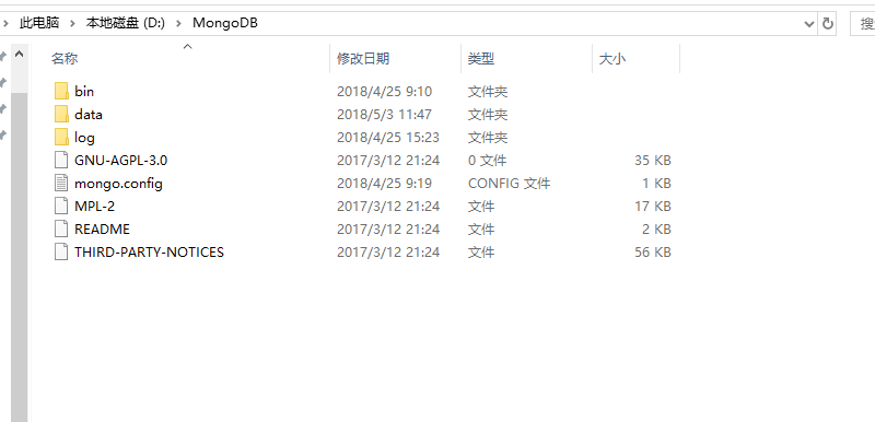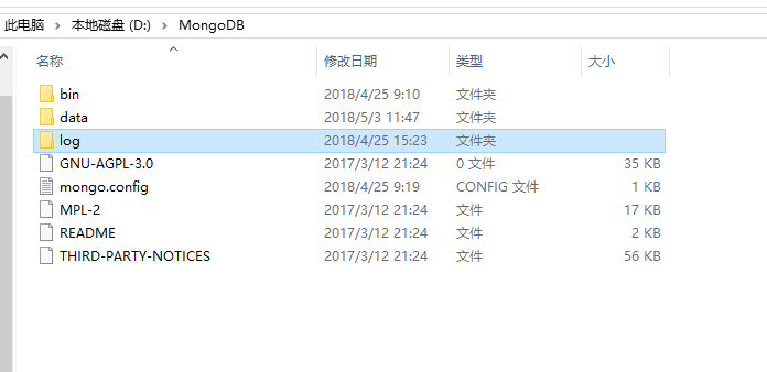在该目录下新建一个data文件夹用于存放数据库。新建一个log用于存放log,并在log目录下添加log.log文件,用于存放log
