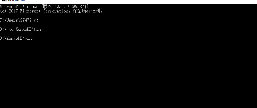 6. 将目录定位到mongodb下的bin文件。输入mongod --dbpath X:\XXXXX\data(刚刚创建的data文件夹路径)