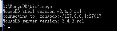 1. 这是以没有auth的方式注册并启动服务,但是这样不安全,一般启动服务的时候都要以auth的方式启动,我们现在先新建一个管理员用户,为稍后以auth方式启动服务做准备。输入命令:mongo