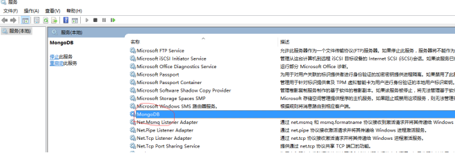 6. 打开服务管理页面,找到MongoDB,右键停止,然后刷新就会发现MongoDB服务没有了