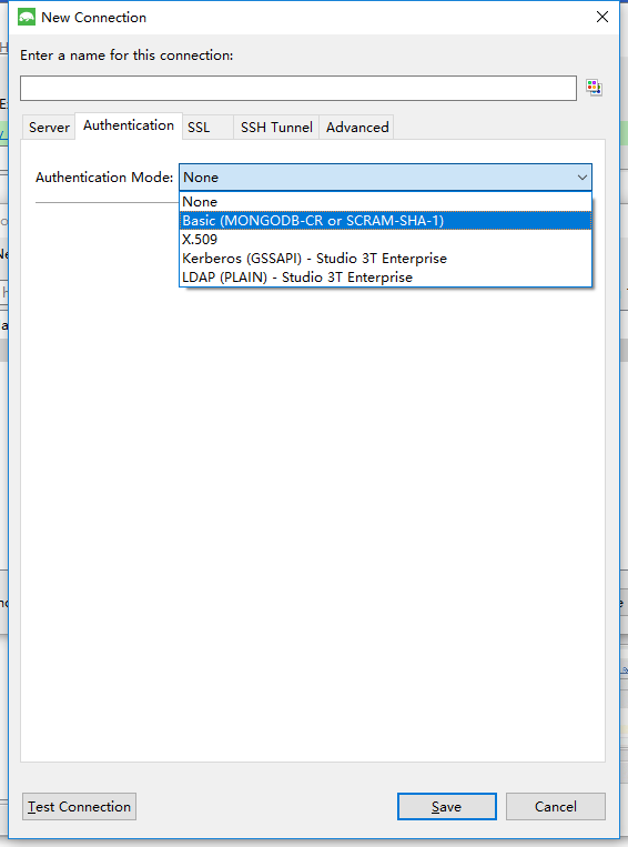 2. 打开studio-3t 点击Connent 新建连接mongoDB 需要账号密码登陆