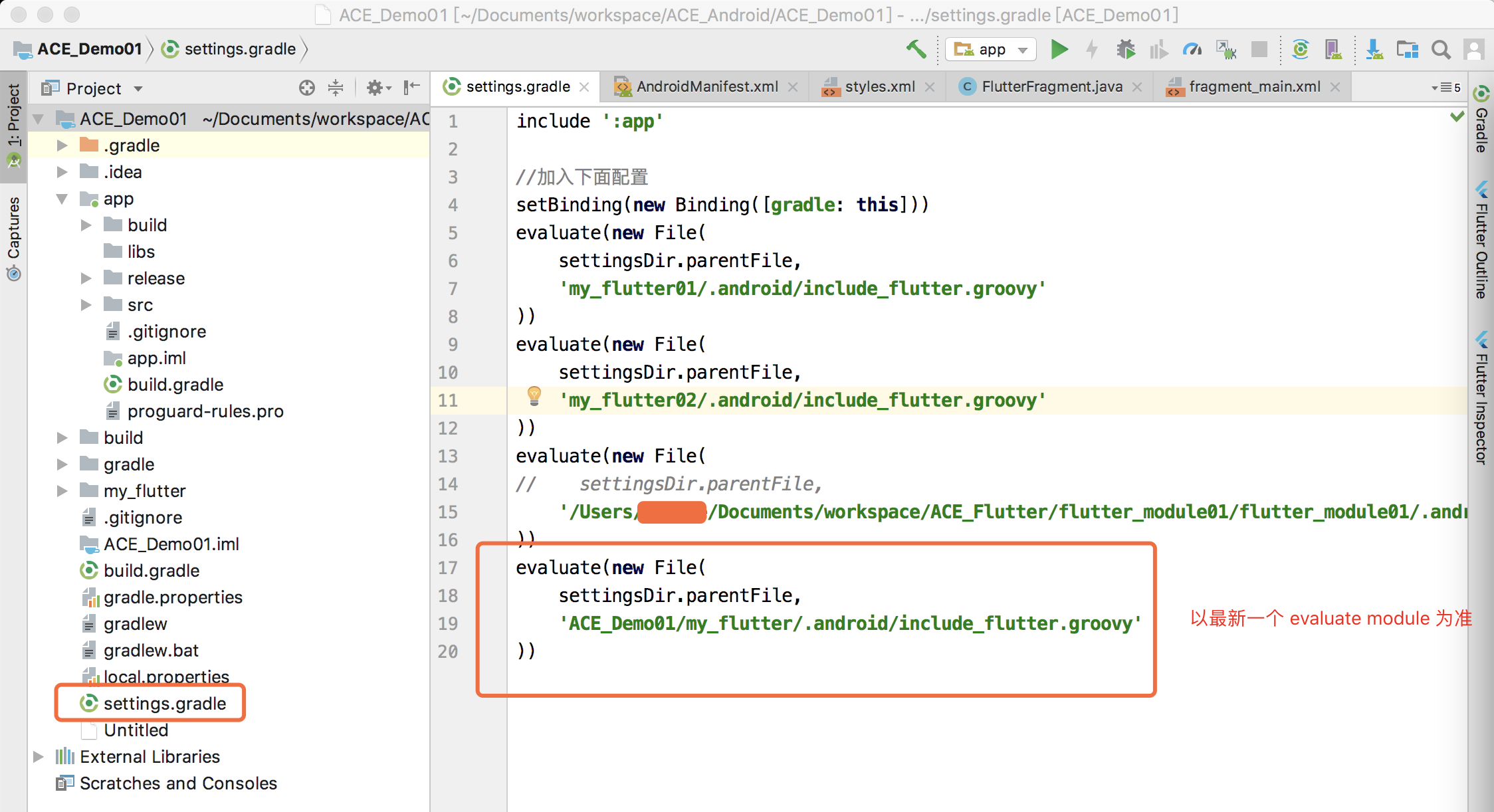小菜测试是,在 setting.gradle 中引入多个 evalue,以为可以同时引入多个 Flutter Module,而实际是后面的引入会覆盖先前的引入,以最后一个 evalue module 为准;