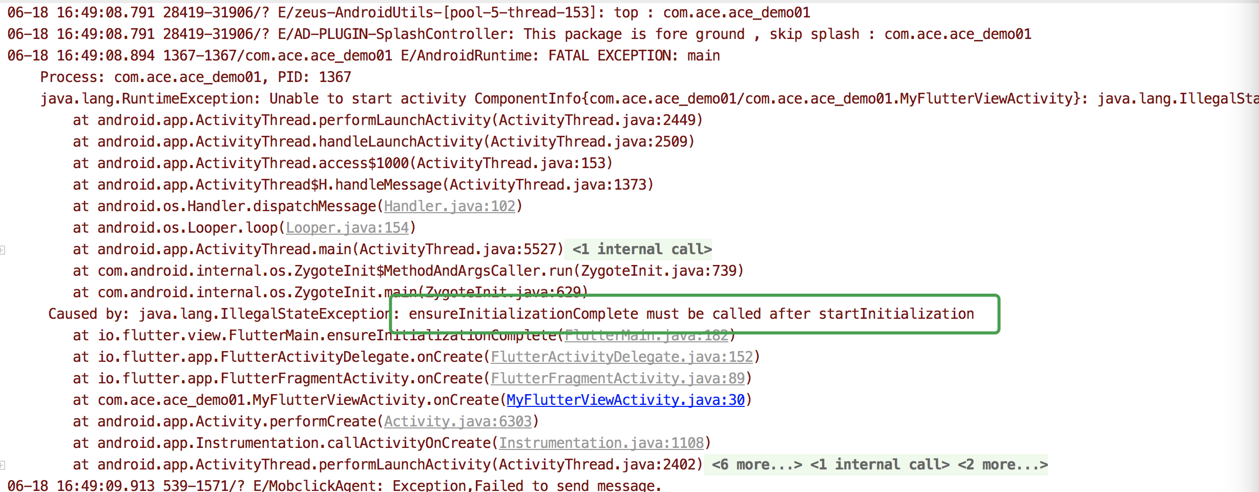 小菜在从 Android 到 Flutter 交互过程时,崩溃提示如下问题;