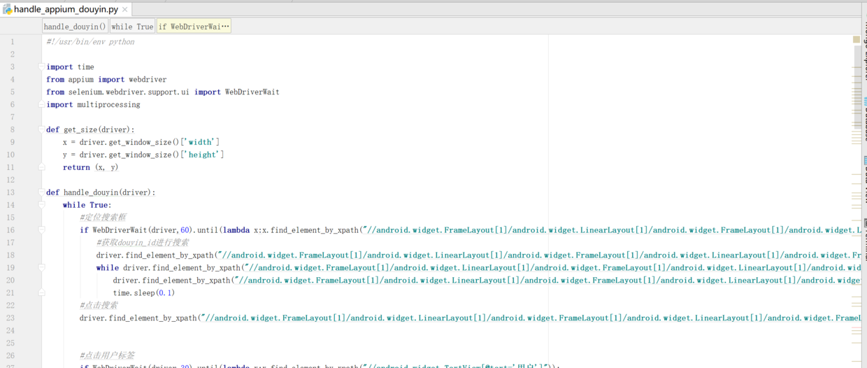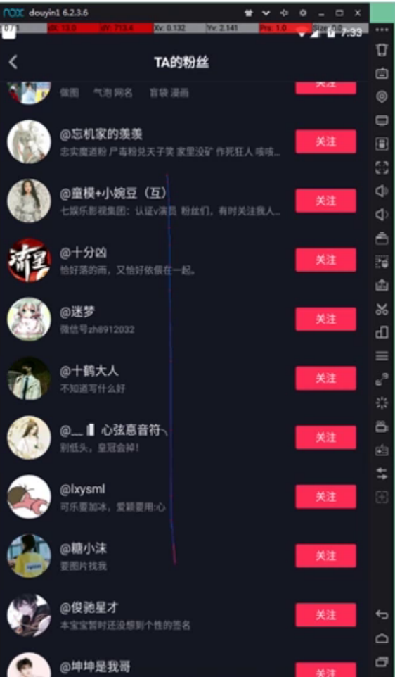 1.appium模拟滑动抖音粉丝数据,一个名人一般仅能获取5000条粉丝数据。