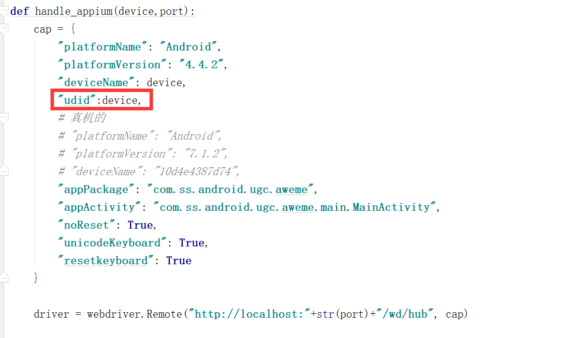 3.在设置多设备,多进程数据抓取时,需要设置appium服务端的bootstrap端口,以及客户端的udid字段。