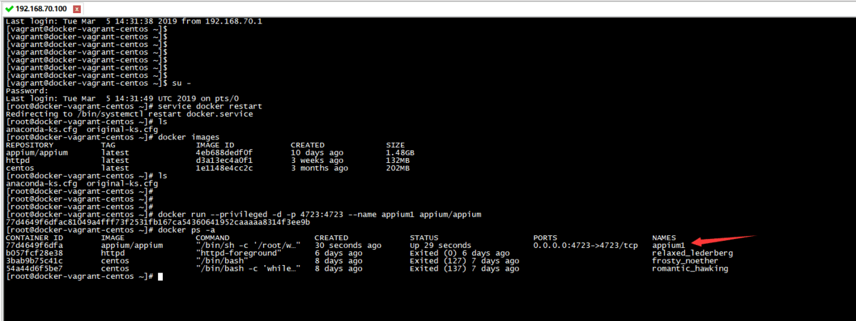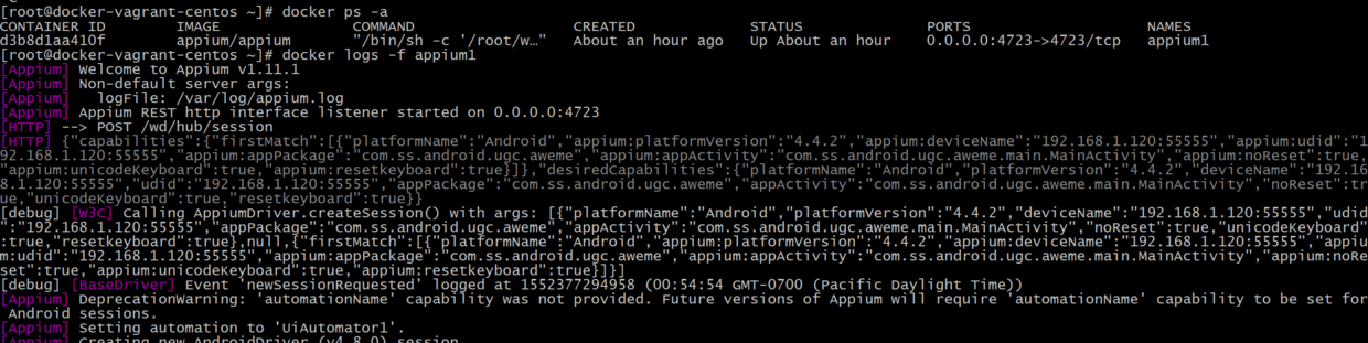 docker ps -a docker logs -f appium1