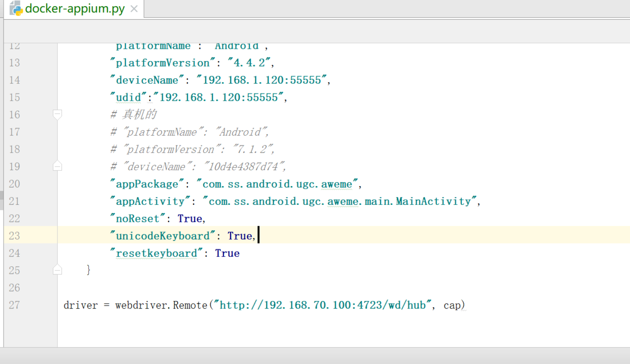 driver = webdriver.Remote("http://192.168.70.100:4723/wd/hub", cap)运行通过