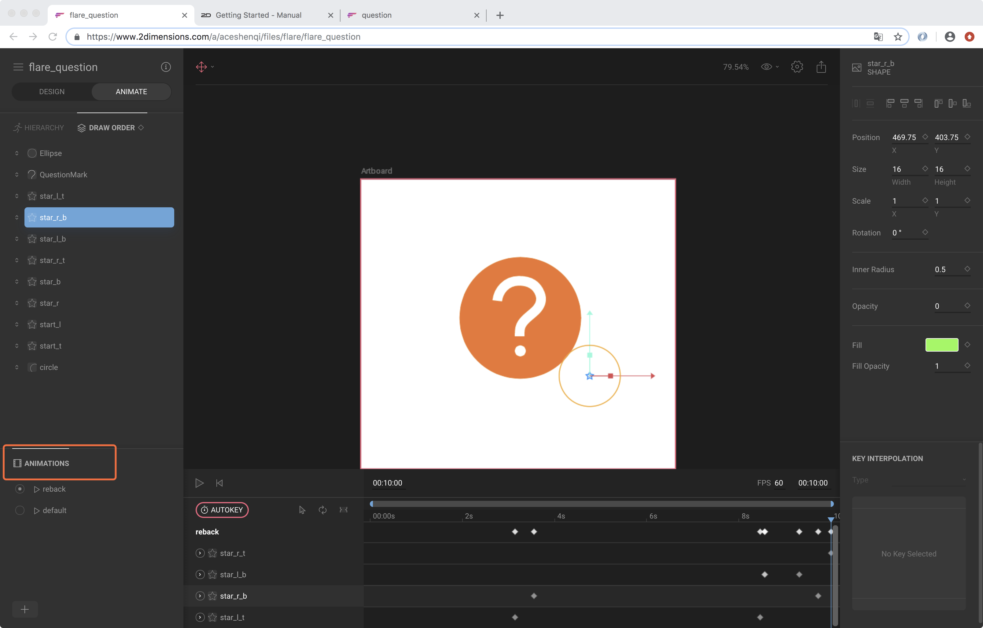 对于动画的制作过程,小菜暂不介绍,一是每个人的使用不同,二是小菜也在摸索过程,设计一个满意的动画需要精心设计与调整;资源区分公开和私有版,可根据右下角是否有 follow 箭头区分,小菜仅尝试一下开源的动画;