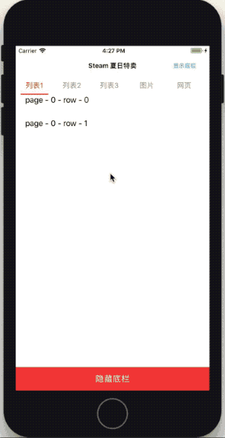 基于 UICollectionView 实现, MFPageView 中 View 可以是 UITableView 、 UIScrollView 、 UICollectionView 和 UIWebView 。总之只要能响应 scrollViewDidScroll: 就可以。