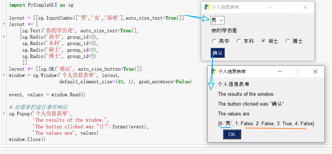 可以看出,使用下列列表的形式,返回的值是具体的字符串,而单选则返回的是布尔值。