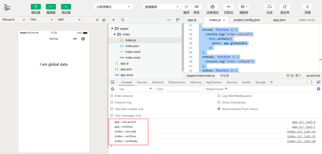 })加载onLoad,加载onShow,全部显示的时候调用onReady