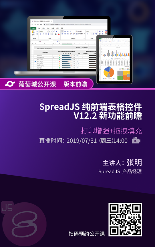 以上就是 SpreadJS纯前端表格控件 V12.2的新功能前瞻,欢迎预约7月31日下午2点的葡萄城公开课“SpreadJS V12.2 新功能前瞻”,与Spread产品经理——张明共同解读产品核心功能,并了解更多新特性应用场景。