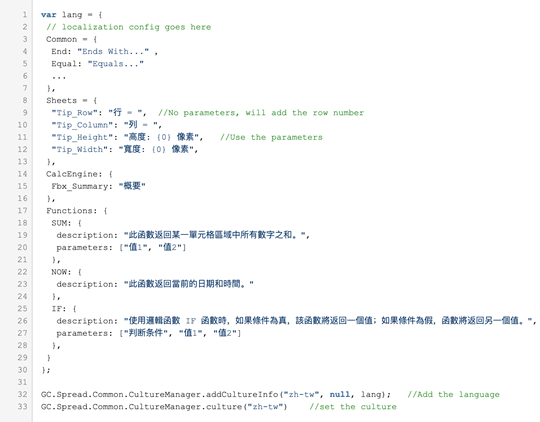 SpreadJS 支持 UI 高度定制化,用户可以根据本地化设置,自定义语言包,即用自己最熟悉的语言在 SpreadJS 中显示单词与字母: