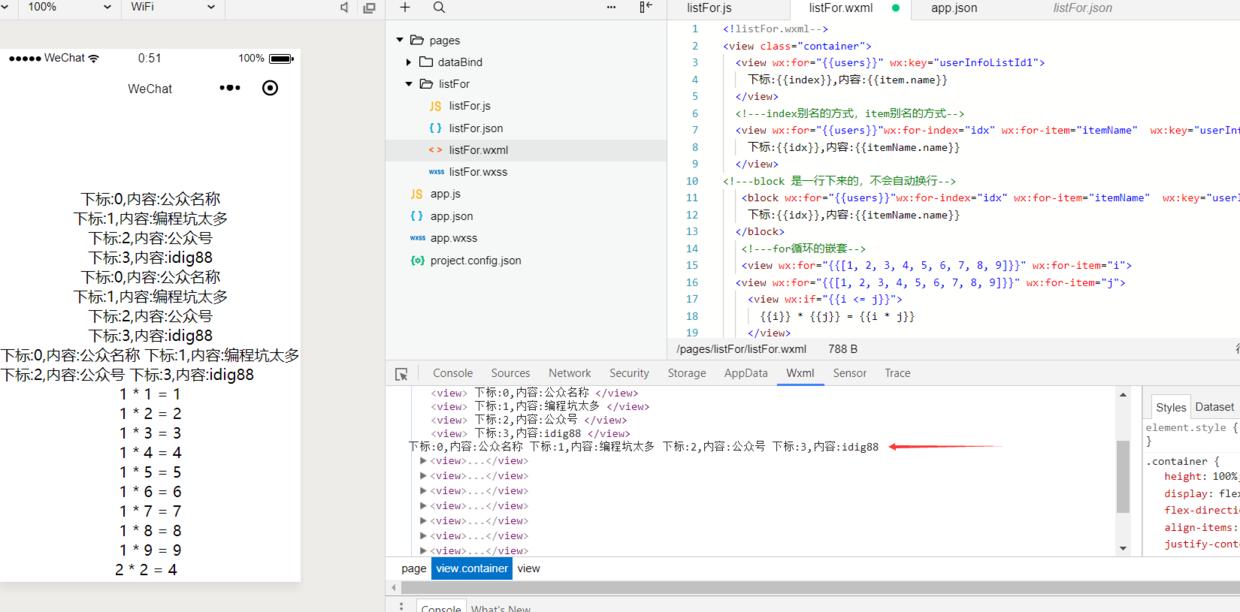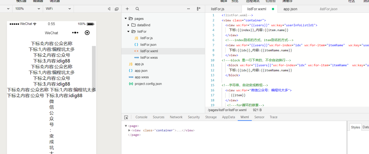 <block wx:for="{{users}}"wx:for-index="idx" wx:for-item="itemName" wx:key="userInfoListId3">